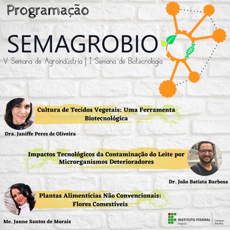 Esta será a primeira vez que ambos os eventos serão realizados de forma online. Por meio da plataforma digital, as atividades pretendem reunir estudantes de Agroindústria e Biotecnologia para um ciclo de 18 palestras, com professores especialistas, mestres e doutores de diferentes empresas e instituições de ensino do Brasil.