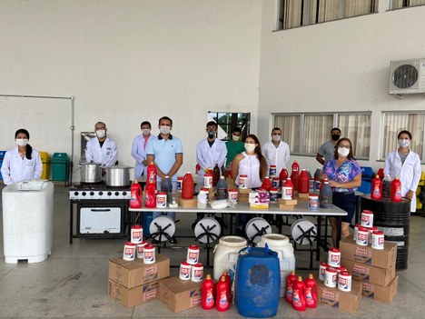 Conforme explica o coordenador do projeto de extensão, professor Marcelo Ramon da Silva Nunes, a confecção do sabão foi possível graças a doações de recursos financeiros, que subsidiaram a compra de produtos químicos e equipamentos, como também de óleos reutilizáveis e embalagens.