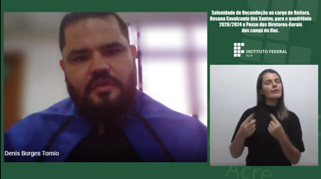 Eleito como diretor geral do campus Tarauacá, Denis Borges Tomio, relembrou seu caminho junto ao Ifac e agradeceu o apoio da família, amigos, assim como também a parceria dos servidores e estudantes da instituição. “Somos um campus que tem uma estrutura singular, com grande capacidade de expansão e tudo graças a nossa reitora Rosana Cavalcante dos Santos. É uma missão, a continuidade desse trabalho que foi feito pelo nosso eterno diretor geral Sérgio Flórido, e que trabalharemos para eternizar esses feitos, como também para ampliar e expandir o nosso campus”.