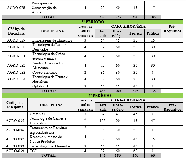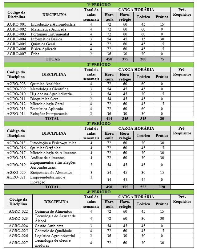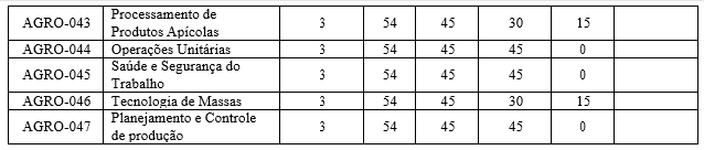 Tabela 1. Matriz Curricular do Curso Superior de Tecnologia em Agroindústria.