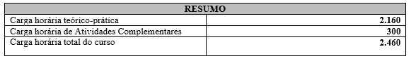 Tabela 2. Resumo Matriz Curricular do Curso Superior de Tecnologia em Agroindústria.