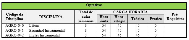Tabela 3. Matriz Curricular Optativa do Curso Superior de Tecnologia em Agroindústria