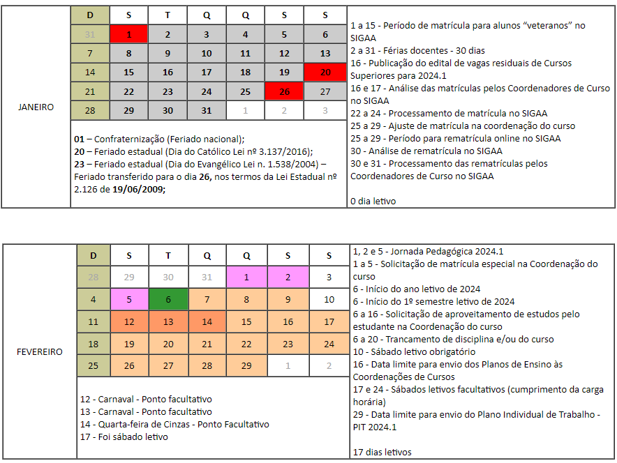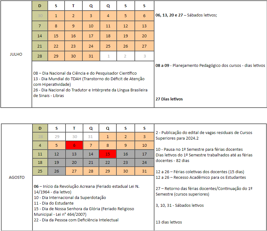 Dispõe sobre a aprovação do Calendário Acadêmico dos Cursos de Graduação no ano letivo de 2024 do Campus Cruzeiro do Sul do Instituto Federal de Educação, Ciência e Tecnologia do Acre (Ifac). |