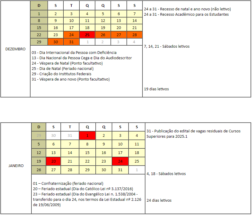 Considerando o Processo nº 23244.003241/2024-29, que suspendeu o Calendário Institucional de 2024;